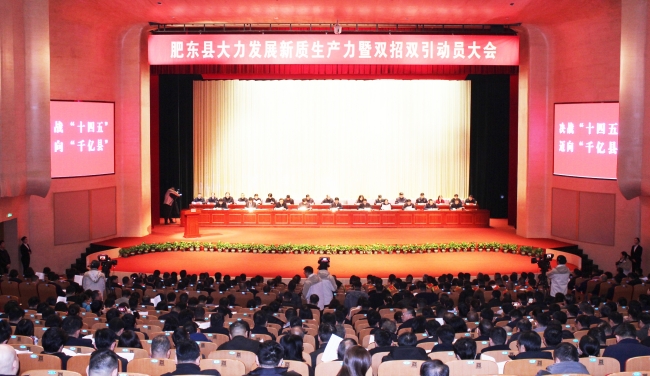 2月18日上午9时,肥东县大力发展新质生产力暨双招双引动员大会在肥东县大剧院隆重举行。本次大会以决战“十四五”,迈向“千亿县”为主题,旨在深入贯彻落实省市“新春第一会”精神,全面部署新一年新质生产力发展任务,为肥东县经济高质量发展注入强劲动力。会议由县委副书记、县长王书武主持。