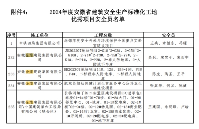 近日,安徽省建设工程质量与安全协会发布《2024年度安徽省建筑安全生产标准化工地创建活动的表彰通知》,对在安全生产标准化建设中表现突出的优秀企业、安全管理负责人及项目经理予以表彰,旨在树立行业标杆,强化示范引领作用。