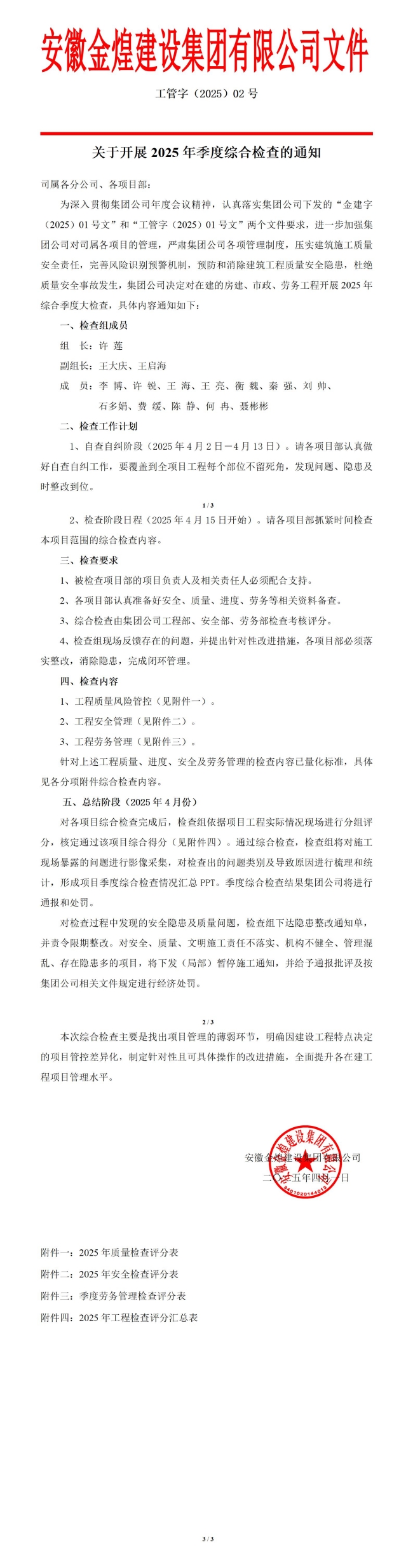 附件四:2025年工程检查评分汇总表