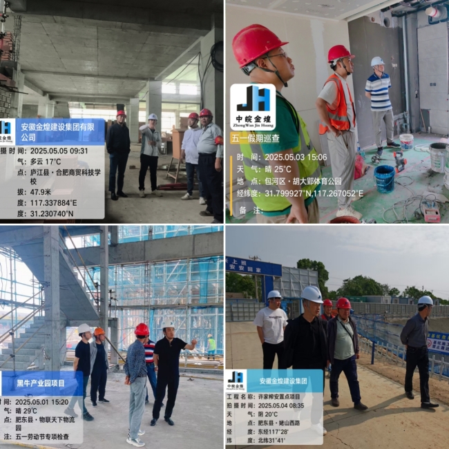 用劳动创辉煌,守匠心筑精品。五一假日期间,集团公司工程管理人员针对“庐江商贸科技学校项目”、“黑牛国际创新产业园项目”等十多个在建重点工程项目全方面检查。针对施工项目现场安全作业、安全文明施工、施工质量管理、关键人员在岗等进行现场巡查。为劳动者的安全健康保驾护航。