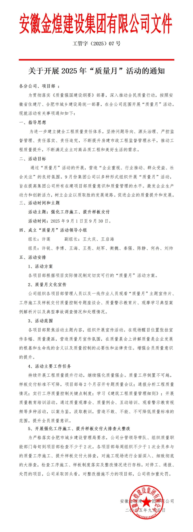 关于开展2025年“质量月”活动的通知
