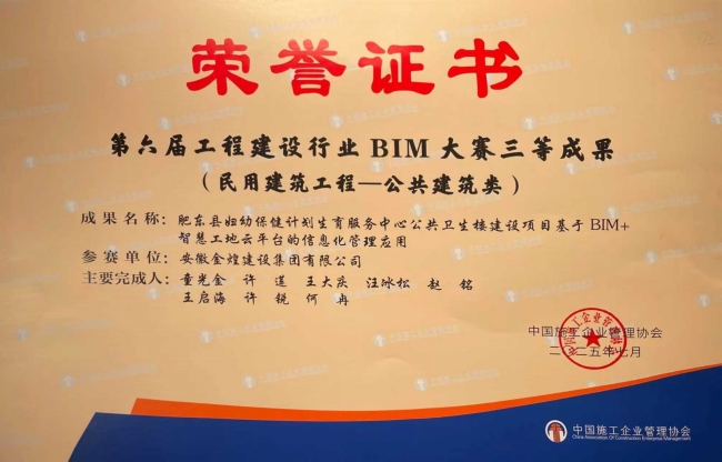 此次获奖,是在国家级赛事中的又一突破,不仅彰显了皖企的技术实力,更通过妇幼保健院这一民生项目,展现了建筑科技服务社会健康的实践价值。金煌集团近年来始终将BIM技术作为提升工程品质的核心引擎,未来将继续加大在智慧工地、数字孪生等领域的深入研学。