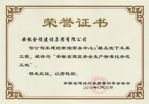 南翔商务中心4#楼及地下车库工程喜获安徽省建筑安全生产标准化示范工地奖