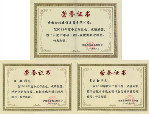金煌集团再度荣获“合肥市市政工程行业优秀企业”等荣誉称号