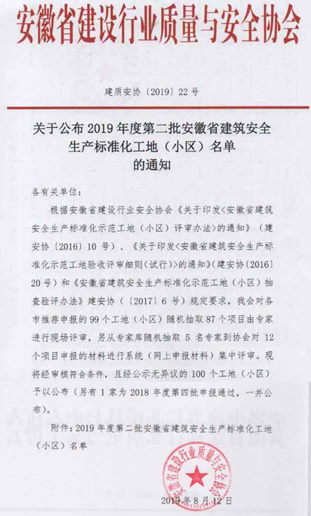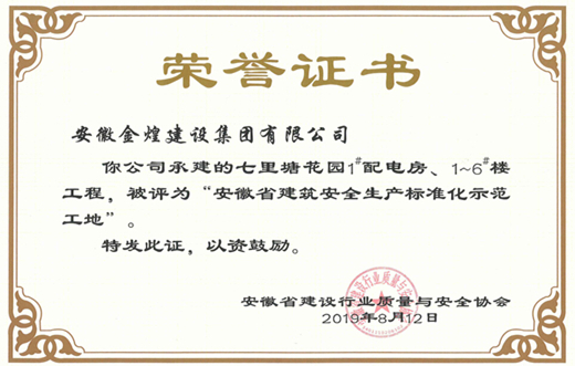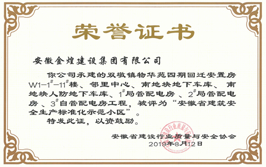 集团公司喜获两项“安徽省建筑安全生产标准化示范工地(小区)”称号