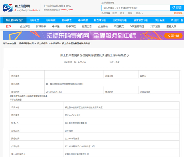 金秋九月,收获的季节,金煌再传捷报。近期,从颍上县招标中心和安庆市公共资源交易中心获得喜讯,金煌集团中标颍上县医院新区住院病房建设项目和安庆市老工业区石化片区老旧小区及市政施工改造双修(一期)项目。