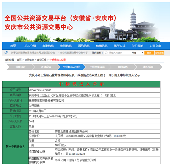 安庆市老工业区石化片区老旧小区及市政施工改造双修(一期)项目包括老工业区石化片区道路、交通、排水、照明、绿化及附属设施建设,中标价2600多万元。该项目是安庆市政府大建设项目之一,旨在焕发安庆市老城区新貌的样板工程。