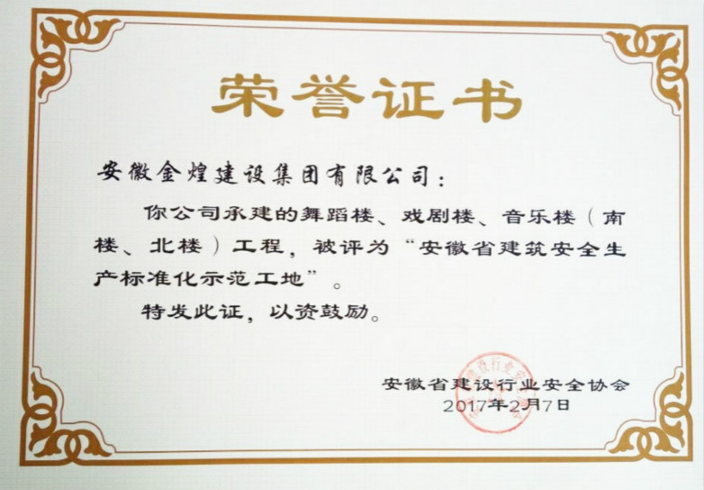 2015年10月,金煌集团承建安徽大学艺术与传媒学院舞蹈楼、戏剧楼、音乐楼(南楼北楼)项目,项目总建筑面积为54360平方米,总造价约1.2亿元,2017年9月交付使用。该项目荣获2016年度安徽省建筑安全生产标准化示范工地称号。