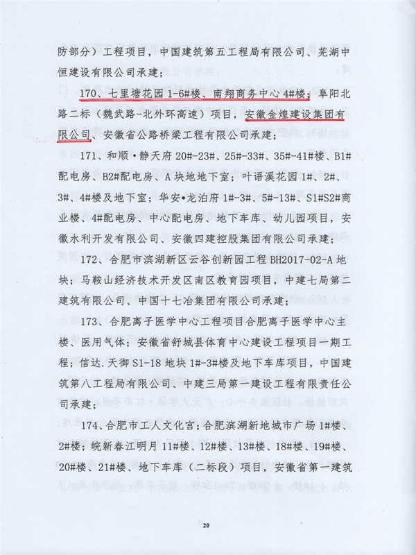 日前,从中国建筑业协会建筑安全与机械分会获悉,由安徽金煌建设集团承建的七里塘花园1#—6#楼工程和南翔商务中心4#楼工程荣获2019年度全国建设工程项目施工安全生产标准化工地。这是金煌集团连续三年获得的第四项全国建设工程安全生产标准化工地奖项(原名称为全国安全文明AAA工地)。