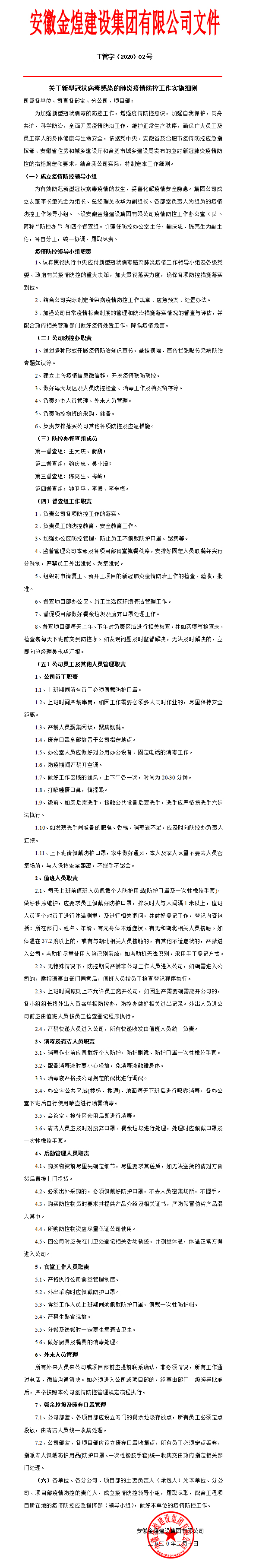 关于新型冠状病毒感染的肺炎疫情防控工作实施细则