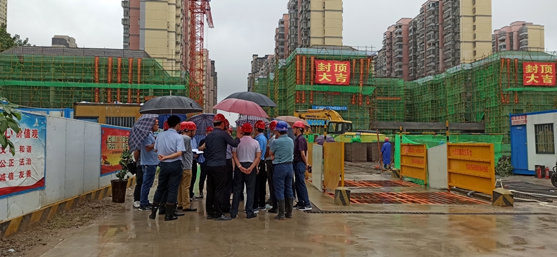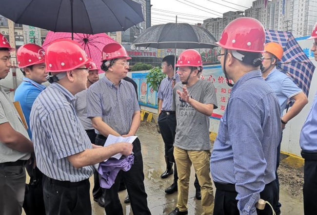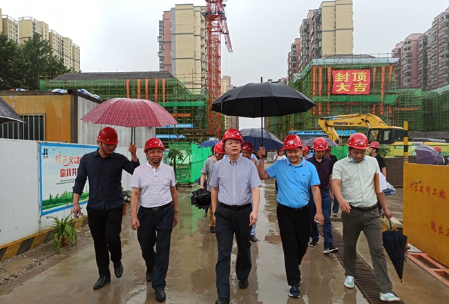 2020年7月15日上午8:40分,集团党委书记、董事长童光金陪同新站区党工委书记、管委会主任路军一行对兴华苑第二小学施工项目现场进行全面工作的调研和指导。