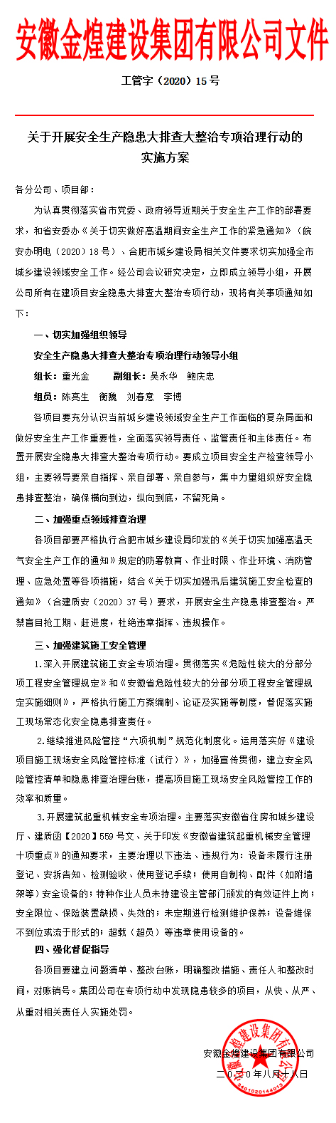 关于开展安全生产隐患大排查大整治专项治理行动的实施方案