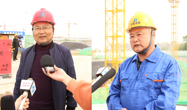中共安徽金煌建设集团党委副书记龚仁东同志接受安徽广播电视台等多家媒体采访。他介绍,该项目是安置房小区,占地面积26万平方米,共有24栋高层,幼儿园、大型车库、商超等配套设施齐全,可以安置2000多户,目前有6栋楼建到二层,其他基础和人防工程正在同步进行中,完成该项目总进度的20%左右,预计2022年的12月底完成,项目建成将全面改善群众的住房环境,提升群众的幸福指数。