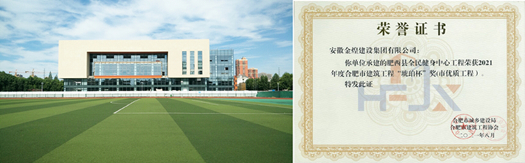 从合肥市建筑业协会获悉,金煌集团承建的肥西县全民健身中心项目和容知日新装备智能服务系列产品项目研发A楼荣获2021年度合肥市建筑工程优质工程“琥珀杯”奖。