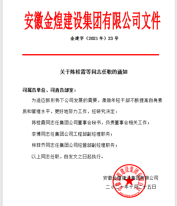 关于陈桂霞等同志任职的通知