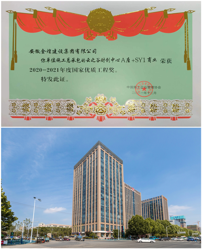 近日,中国施工企业管理协会发布的中施企协字(2021)107号文中表彰2020-2021年度国家优质工程奖获奖工程的决定,由安徽金煌建设集团有限公司承建的云之谷财创中心A座+SY1商业荣登榜单,获此殊荣。