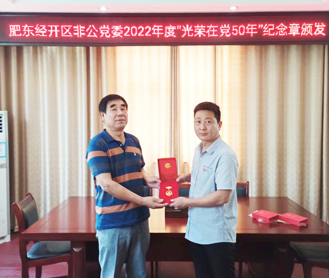 肥东经开区非公党委开展“光荣在党50年”纪念章颁发活动