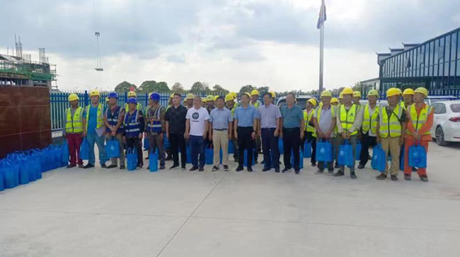 在项目现场,王家华主席与一线建设者亲切交谈,将暖心的慰问品发放到每个人手中,亲切询问施工安排和工人作息等情况,叮嘱各参建单位做好施工一线人员的劳动保护、关心关爱他们的生命安全和身体健康。