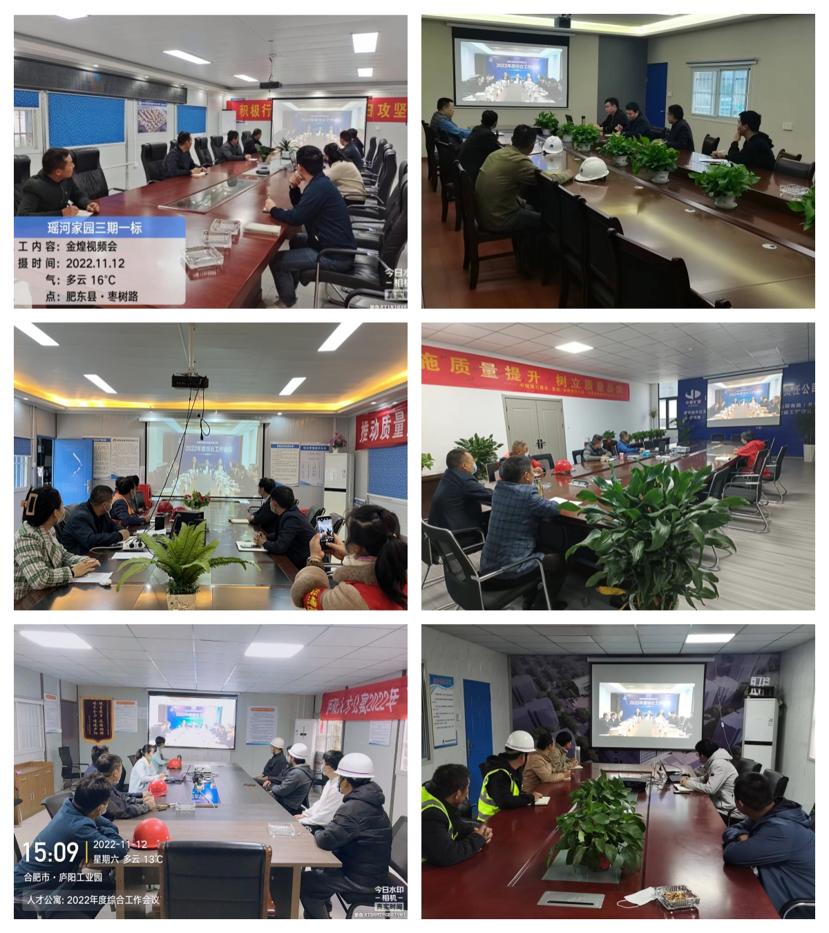 金煌集团2022年度综合工作会议于11月12日下午3点顺利召开。按照疫情防控要求,此次会议采取线上视频会议方式进行,主会场设在集团四楼大会议室,各在建项目部通过直播形式进行收看。集团公司党委书记董事长童光金、总经理吴永华、分管副总经理、相关部室负责人列席公司主会场,各在建项目负责人、管理人员在项目分会场参会。会议由集团副总经理许莲主持。