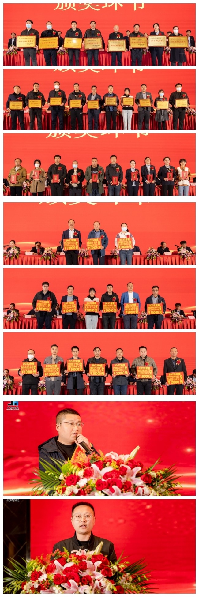 会上,党委副书记吴梧生同志宣读了《关于表彰2022年度先进集体和先进个人的决定》,财务总监吴本松宣读了《2022年度集团公司光荣册》。总工王大庆公布了2022年度项目获奖奖金。大会对先进集体、优秀施工项目部、优秀班组、先进个人进行了隆重的表彰。其次,优秀项目经理代表张迎松同志和先进个人代表张圣亚同志把他们在工作中的经验技巧和取得的卓越佳绩与参会人员一起分享交流,相互共勉,共同进步。
