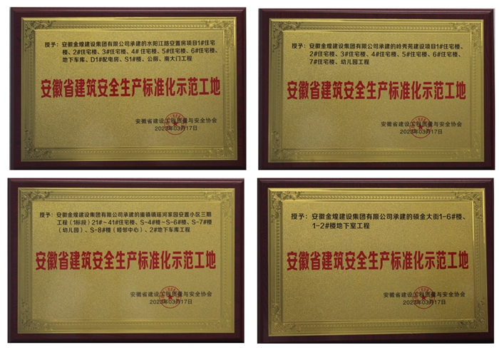 金煌集团再添四项“安徽省建筑安全生产标准化示范工地”