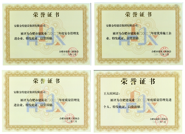 金煌集团荣获2022年度合肥市建筑工程协会多项荣誉