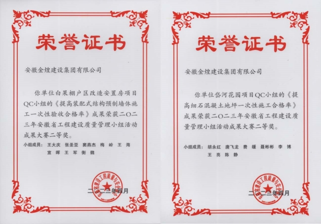 金煌集团选派交流发布课题的QC小组《提高细石混凝土地坪一次施工合格率》和QC小组《提高装配式结构预制墙体施工一次性验收合格率》两项成果荣获省级QC二等奖的成绩,充分展现了金煌集团优秀质量管理小组的实力和风采。