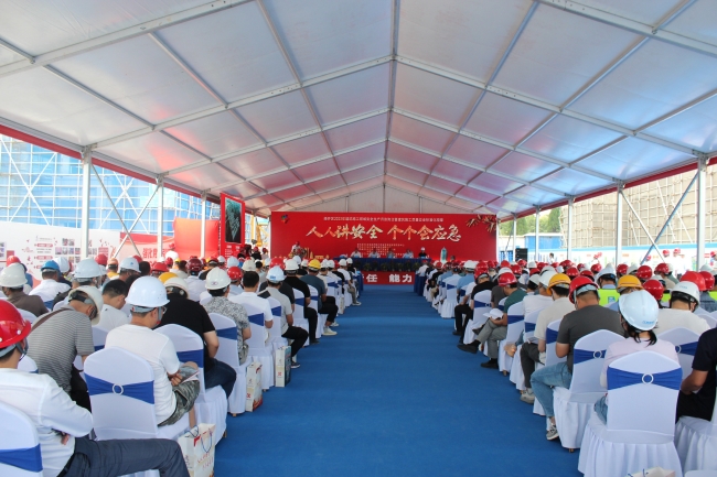 2023年6月是全国第22个“安全生产月”,今年安全生产月主题是“人人讲安全、个个会应急”。为有效遏制重特大安全生产事故,结合安全生产工作的形势,在总结经验的基础上,于6月16日全国安全宣传咨询日这一特殊的日子里,由主办单位合肥经济技术开发区建设管理服务中心,在中海璟园(JK202207地块项目)开展“人人讲安全、个个会应急”主题观摩会。合肥市经济技术开发区工委委员、管委会副主任王子隽等主要领导,经开区在建项目各建设、施工、监理单位相关负责人等三百余人参加此次观摩活动。安徽金煌建设集团作为参办单位,全程为观摩会做好服务工作。