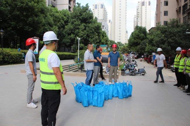 入伏以来,合肥市已进入持续高温模式。面对高温“打卡”,一线建设者们依然坚守岗位,备受“烤”验。8月9日下午,合肥高新城创建设投资有限公司副总经理陈华俊带队,来我司承建的高新城创公司2014年前承建的小区外墙翻新工程设计施工一体化项目给建设者们送去清凉大礼包。金煌集团总经理吴永华、工程部副经理钟卫平接待。