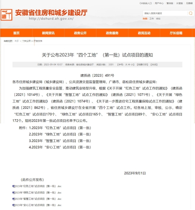 金煌集团两项目荣获安徽省住房和城乡建设厅2023年“四个工地”(第一批)试点项目
