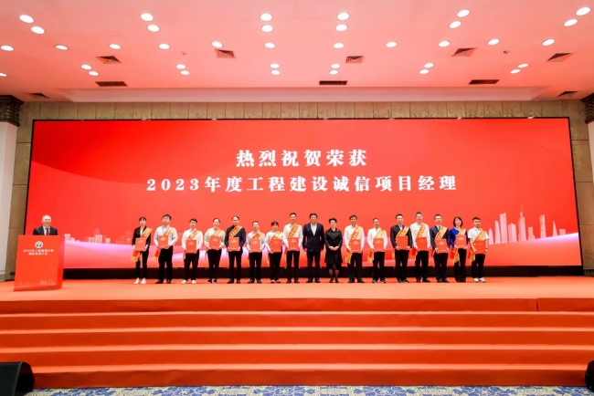 为了鼓励先进,促进工程建设行业信用成果转化应用,会议公布了各类诚信奖项并授牌颁发。今年是公司信用评价复评年度,金煌集团继续保持AAA信用等级称号。党委书记、董事长童光金同志荣获建设工程行业诚信企业家称号,斯志浩同志荣获工程建设行业诚信项目经理称号,戴平同志荣获优秀联络员称号。