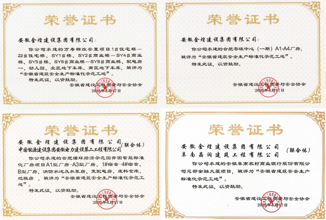 金煌集团再添四个“安徽省建筑安全生产标准化示范工地”
