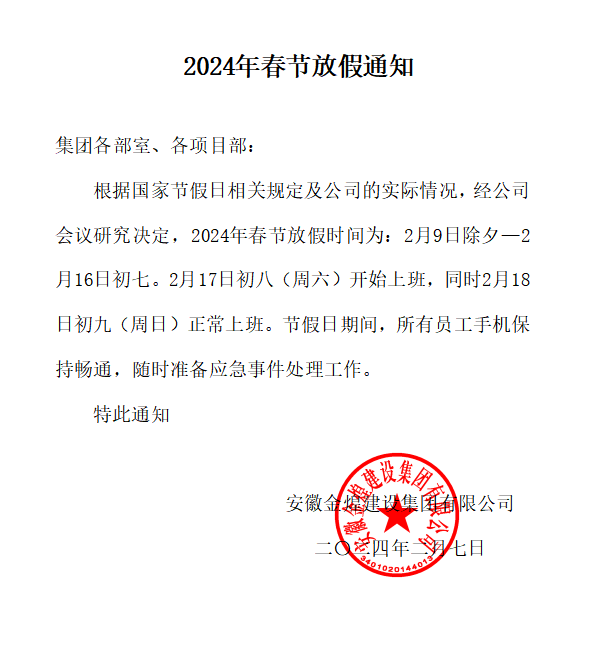 2024年春节放假通知
