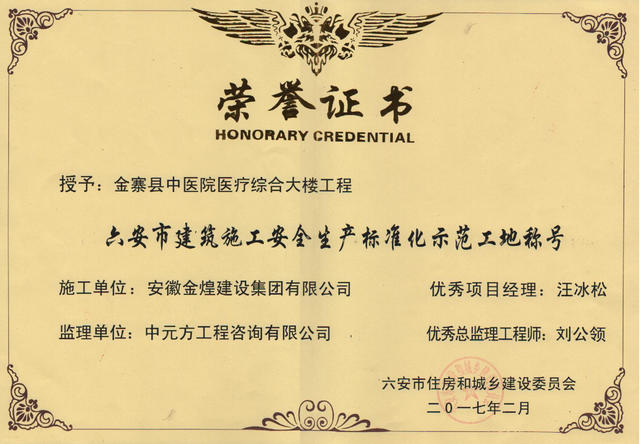 2017年六安安全示范工地(金寨中医院)